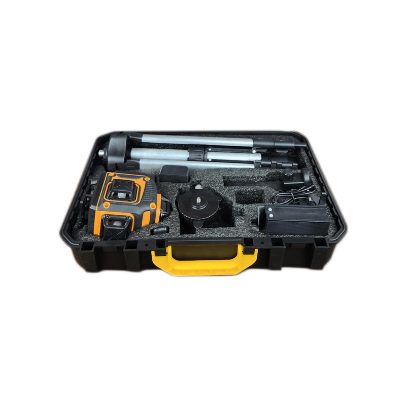 این مجموعه با لوازم جانبی کامل و کاربردی ارائه میشود. سه پایه یک متری به کاربر امکان میدهد تا ارتفاع تراز را به دلخواه تنظیم کند. باتری و شارژر همراه، طول عمر کاری دستگاه را تضمین میکنند. کیف حمل نیز از ابزار در برابر ضربه و آسیب های فیزیکی محافظت میکند. علاوه بر این، استند رومیزی و مگنت دیواری نیز در این مجموعه قرار دارند که امکان نصب تراز بر روی سطوح مختلف و کار در ارتفاعات را فراهم میکنند.