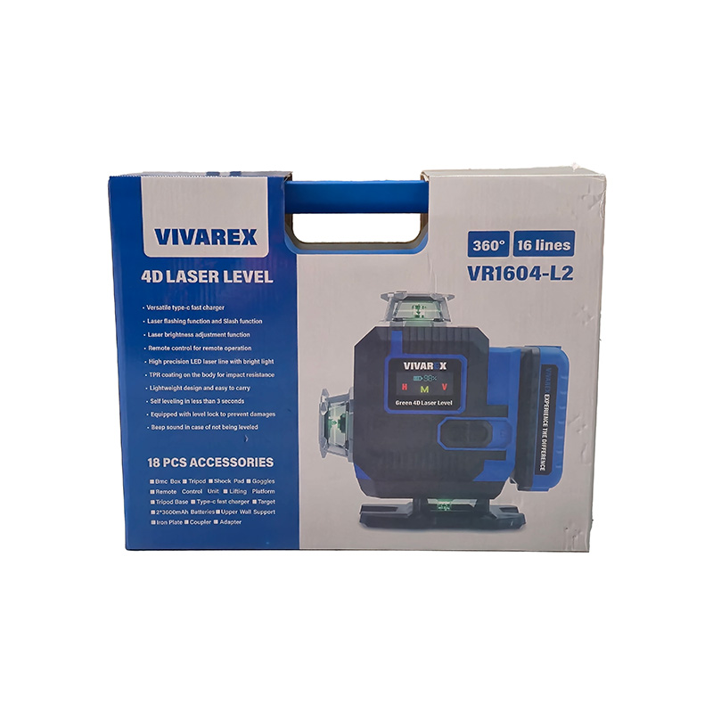 تراز لیزری یکی از ابزارهای حرفه ای و بسیار دقیق در زمینه ساخت و ساخت ، نصب انواع کاشی و سرامیک ، طراحی و نصب قطعات مربوط به دکوراسیون داخلی و … کاربرد دارد. این ابزار به شما کمک میکند تا برش و خط های صاف و دقیق و بدون ایراد روی سطوح ایجاد نمایید. یکی از تراز لیزری هایی که در بازار طراحی و تولید شد، تراز لیزری 16 خط ویوارکس مدل VR1604-L2 است که در ادامه به معرفی تراز لیزری با کیفیت خواهیم پرداخت.