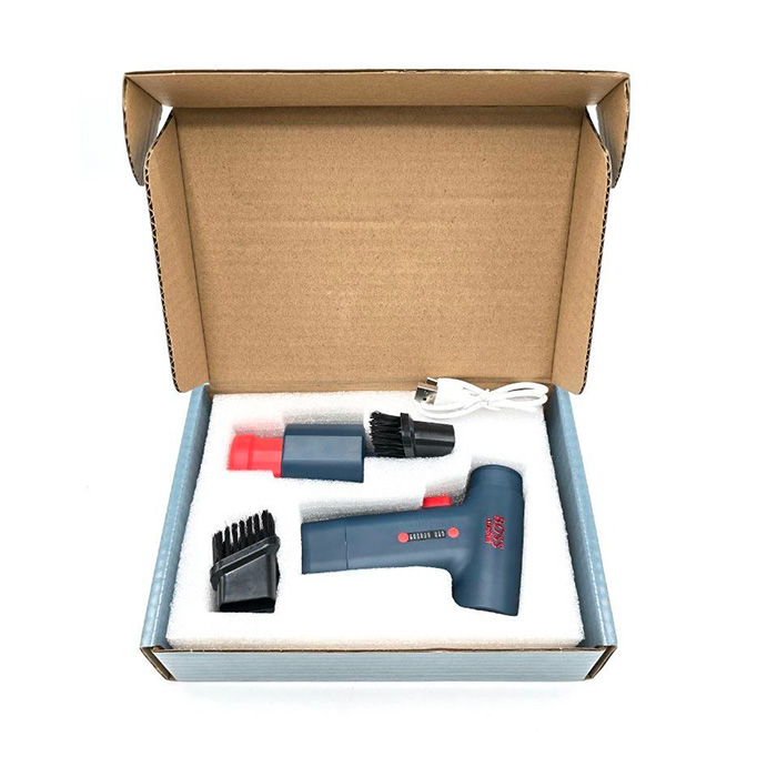 در این حالت، دستگاه با مکیدن هوا، عملکرد یک جاروی کوچک و قابل حمل را ایفا میکند. این قابلیت برای جمعآوری گرد و غبار، خرده های ریز و زباله های کوچک در محیط های مختلف مانند داخل خودرو، روی میز کار، یا گوشه های کارگاه بسیار کاربردی است. حالت مکندگی، این ابزار را به یک راه حل کامل برای نظافت سریع و مؤثر تبدیل میکند.