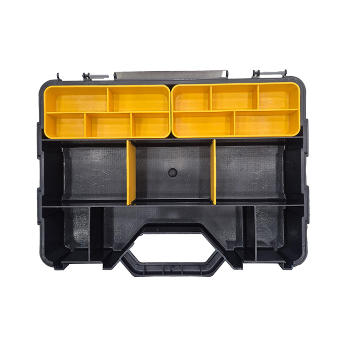 این جعبه نظم دهنده دارای ۲۱ محفظه نگهداری ابزار است که فضای کافی برای مرتبسازی قطعات و ابزارهای کوچک را فراهم میکند. علاوه بر این، وجود دو پارتیشن قابل جابجایی، به کاربر امکان میدهد تا اندازه محفظهها را متناسب با ابعاد ابزارها یا قطعات خود تنظیم کند. این انعطافپذیری در سازماندهی، یک مزیت مهم محسوب میشود.